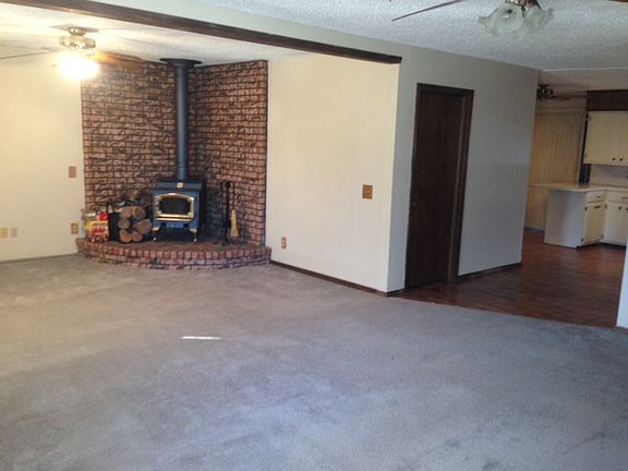 3 bed, 1.5 bath 1800 sq. ft. home with spacious living room with wood burning stove. Very nice enclosed, wood lined room with hot tub. New flooring in kitchen with updated painted kitchen cabinets. Walk in laundry room. Attached carport and new roof in 2012. For more information on this home or other homes in Woodward please call Smith & Co, Auction & Realty, In.c Realtor Tamra Provines 580-571-2200.