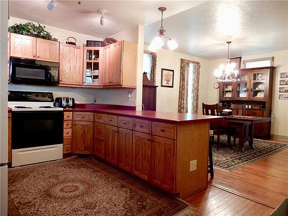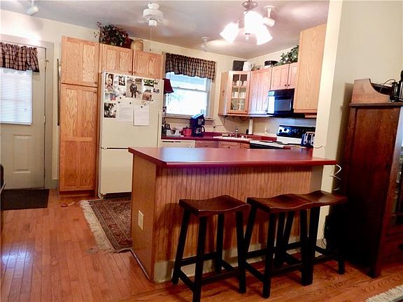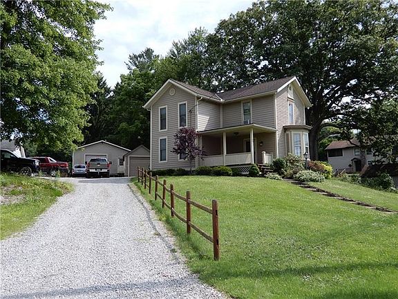 Fantastic Home on the very corner of town! Stately Charm abounds. Beautiful handcrafted woodwork helps creat the unique beauty & charm of this home that offers expanding family livng. Kitchen is open to the dining area creating an ambiance of family style entertaining. Nice size livingroom with open staircase to upper level. First floor laundry & full bath. A charming front den area leads to an outside side porch for relaxing. The den could also make a first floor bedroom if desired. Second floor host bedroom & full bath. Both sides & back area host the porches,creating 3 seperate areas to cozy up to. Full basement. One car garage. ** Bonus Building** Large building currently used as a professional wood shop can be used for endless ideas. This home offers direct access across to the park! Just a stroll to town for groceries,mail,banking,restaurant, drug store. Etc! This house is waiting for You to call Home! Please note: shared drive ( Den & Master bedroom photos to come)