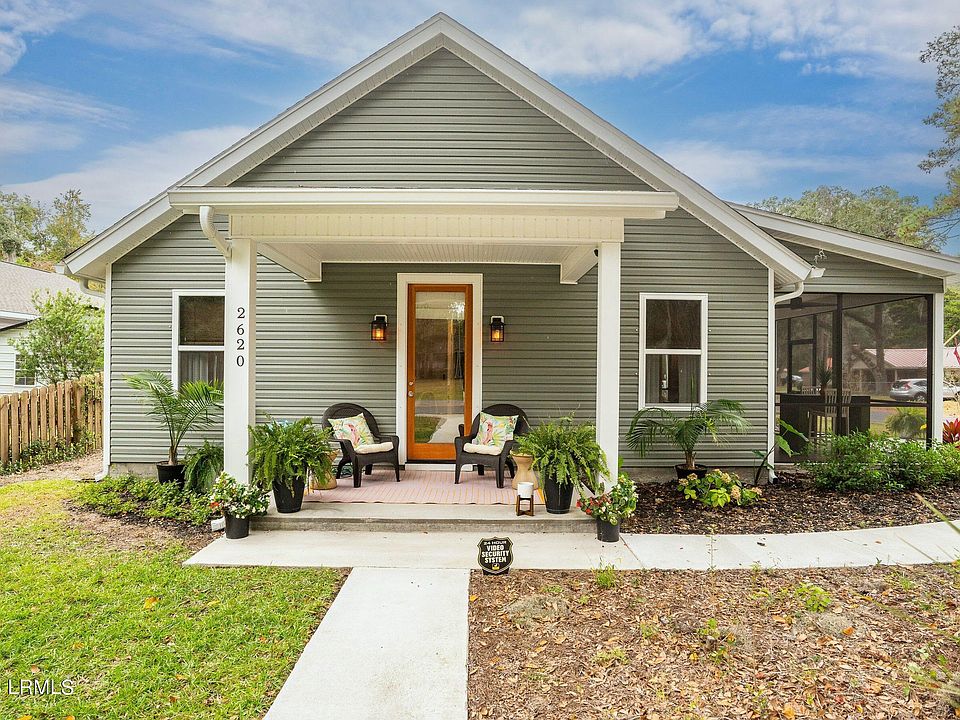 Follow the beautiful streetscape of majestic, moss draped, live oak trees to your new lowcountry home. Exceptional interior and exterior details make this the perfect place to call home. Quality construction by a local builder with a designers touch. A 10x12 shed sits perfectly next to a 24x24 parking landing with sidewalk skirting the perimeter of the home leading to 10x24 screened porch or directly to the front door. Irrigation, sod and beautiful plantings round out the elegant curb appeal. Interior features include tiled wall in kitchen from counter to ceiling, quartz countertops, brand new ZLine commercial grade gas range and all new applicances finish out the perfect kitchen for gourmet cooking and entertaining. Washer and dryer are housed in deep set hallway laundry room with plenty of shelving. Spacious rooms easily hold king size beds with