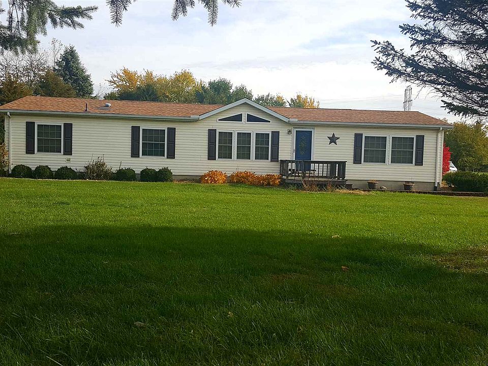 ENJOY THE PEACE AND QUIET IN THIS 3 BED 2 BATH HOME LOCATED ON .75 OF AN ACRE. THIS HOME OFFERS OVER 1700 SQ. FT. OPEN CONCEPT FLOOR PLAN WITH VAULTED CEILINGS , SPACIOUS FAMILY ROOM WITH GAS FIREPLACE , KITCHEN WITH BREAKFAST BAR AND EVEN A LARGE DINNING AREA. SPLIT FLOOR PLAN WITH A MASTER BEDROOM SUITE WITH HIS AND HER CLOSETS , GARDEN TUB, AND PLENTY OF STORAGE. OUTSIDE FEATURES A 32 X 40 DETACHED GARAGE , LANDSCAPED YARD , NICE CORNER LOT LOCATED JUST MINUTES OUTSIDE OF TOWN. THERE IS A NEW ROOF BEING PUT ON THE HOME AND GARAGE AND THE WATER SOFTENER IS ONLY 5 MONTHS OLD.