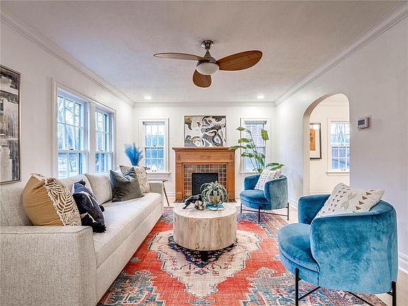 New roof added Jan. 2023. Stately colonial beauty nestled in heart of Cleveland UCD. Upon entering, discover a stunningly detailed mock fireplace, framed by windows with beautifully refinished oak flooring. Modern kitchen updates include quartz countertops with subtle white veining, vertical subway tile backsplash, 5-burner gas stove, and single basin sink with new fixtures. Indoor laundry room/pantry located off the kitchen. Half bath with original pinwheel tile and updated fixtures on ground floor. Three spacious bedrooms filled with natural light and ample closet space on second story. Main bath on 2nd floor includes beautiful, original basketweave floor tile. Separately zoned top and bottom floor heat and air. Step outside to a large fenced backyard and patio perfect for entertaining, and a large shed/storage space. Blocks away from highly rated Cleveland Elementary