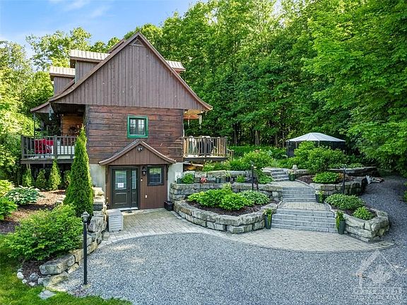 One of a kind, stunning custom hybrid log home resting on peaceful & tranquil approx 1.2-acre lot in the heart of Cumberland. Breathtaking flower beds & interlock adorn the surrounding landscape. Approx 2300sq ft + basement. Enter through the back foyer leading to the great room boasting gleaming oak hardwood floors, gas fireplace (converted from wood stove), wood ceiling beams, large dining room to host family & guests + full 3pc bathroom. Step into the kitchen which incls ample cabinet & counter space + lots of windows bringing in natural light. Second floors boasts pine flooring throughout 4 bedrooms. Primary incls WIC w/2pc rough-in for optional future ensuite. Finished LL incls rec room, laundry room + storage space. Fantastic location w/ gorgeous landscaping and ample space to build a dream garage while being conveniently close to Cumberland amenities & Ottawa! 24 irrevocable on all offers.