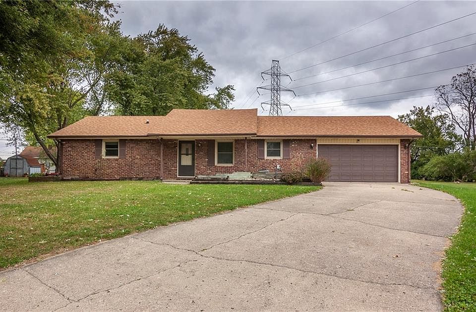 Come home to this 3 bdrm brick ranch sitting in a culd-de-sac on Anderson's Southside! Great location and close to shopping, restaurants, Hoosier Park, and the interstate! Living room with exposed brick wall and shiplap, plus a formal dining room. MB offers walk in closet and a 1/2 bath. Newer vinyl windows and newer carpet. 2 car attached garage! Large .45 acre lot!