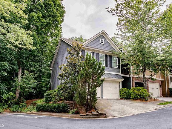 Beautiful corner end unit townhouse on tree lined street in sought after, gated community close to shopping and entertainment. Walk in the front entrance and be welcomed into the dinning room with trey ceiling that opens to the great room with wall of windows and corner fireplace. Open kitchen with dark cabinets, stainless appliances, granite counters, and tile backsplash opens to the great room for easy entertaining. Step out on the deck and enjoy the wooded private view. Upstairs you will find a large master suite with wooded view and trey ceiling. Master bath with dual vanities, jetted tub, shower and large walk in closet. Two additional bedrooms are toward the front, one with itâs own upper balcony.