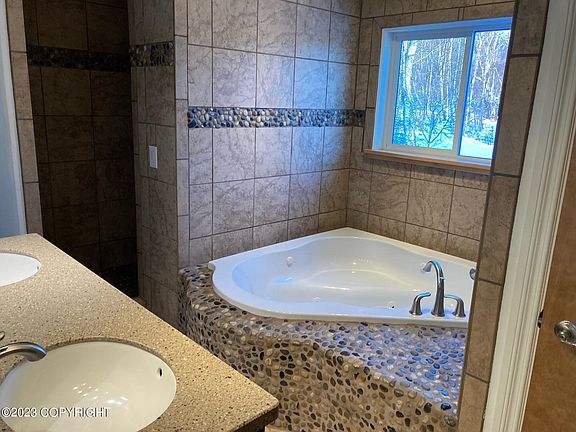 SELLER IS PROVIDING A 1-YEAR HOME WARRANTY This home was designed to be able to convert to a duplex when and if desired. The plumbing is in place for the addl, kitchenette, the 2nd pantry is plumbed to become an HALF BATH on the lower level. The upstairs could have been a full Master Suite but instead granted his other half a larger closet. Floor plan provided. Lovely Setting on 3 1/2+ acres3 1/2 acres of View property is to Begin with Great Curb Appeal with a circular drive, plenty of extra parking and will accomodate a n RV easily. This home was designed with Open-Living Concept, and to enjoy the Spectacular Views. The Countertops downstairs are beautiful Granite, the upstairs Solid Surface. The Woodstove is more than adequate to heat the home. Duramax 35-year Roof Shingles have not lost even one shingle over the past Several Severe winters. There are 2 pantry's for your convenience, a Large Work Shop on one end of the property and at the opposite end a Greenhouse in great shape, plus a gardening structures for your wonderful Alaskan Cabbage, Root Veg. etc protected from the moose in a custom built hot house with protective measures while being easily accessible during our endless Alaskan summer sun. The landscaping and exterior decking will be enjoyed by all with both upper & lower decks accessible by sliding glass. The Circular Driveway, The Mudroom and the Finished Garage with Hose bibs, floor-drain and valve-mixer for great use of the oversized 2=car garage. Seller has 2 EXTRA Solid Core doors should the new home owner ever want to convert to a Duplex Use or Air BNB Style property. Beautifully maintained home and ready to Sell. True French Doors and Surround Sound throughout with Cat 6 and COAX installed. Built on MONOSLAB. The Seller himself brought in 1500 yards of gravel to construct so soundly the circular. An Home you will love to enjoy your family and friends with privacy yet because of the location this home is ideal for the Anchorage Commute as it's location by Machentanz School is just one of the many benefits for its location. Come, See and Buy All information is provided in the Listing.