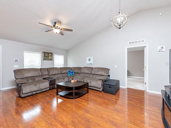 Located in Lakeview Village of Cala Hills, an amenities rich community, perfect for the person on the go, you are destined to find yourself at home as soon as you park the car. First thing you notice is the beautiful landscaping leading up to the inviting front door. Once inside you are greeted in a large formal living room with vaulted ceilings and hardwood floors. From the formal living area you seamlessly flow into the family room/kitchen combination with a bonus eat-in dining room. Again the vaulted ceilings, and the hardwood floors follow thru to this additional living space, but wait there is more, bright french doors lead out to the screened - in patio for great BBQ times with friends & family or a quiet morning coffee and a book. While you're destined to fall in love with spending time inside this home, you will find that Cala Hills has something for everyone to do in the community as well. They have a large pool, hot tub, tennis courts, racketball courts, walking trails, a clubhouse with multiple gathering rooms including a billiard room, gym and a library. What is not to love, put this home on the top of your must see list.