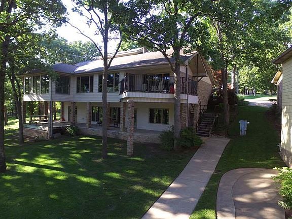 Buffalo Shores Grand Lake Waterfront Gem...Now Available! This Large Open floor plan 4 bedroom/5 bath home was designed with Fun and Family in mind! Large private office can be a 5th bedroom too. Every bedroom has a private bath. Features include; solid oak floors, large open family/kitchen living upstairs, huge master suite, sunroom, large dock with 28' slip with deep water. Beautiful private lot with multiple decks up and down. Large 2 car garage and a workshop/golf cart/ lawn tool garage down below. Large landscaped yard with mature trees and sprinkler system. Check out all the upgrades in documents! Don't wait...this one is a MUST SEE!!!
