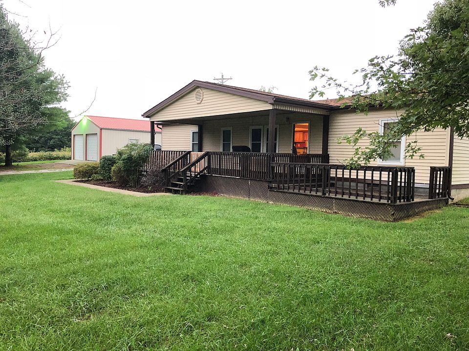 ::Manufactured home on permanent foundation on approx. 2 acres. 3 bedroom 2 bath. Very private and secluded area with mature shade. Included is refrigerator, stove, microwave range, washer and dryer, dishwasher. Home has replacement windows and nice covered deck on front of the home. Home also comes with detached 2 car garage. Please call/text 270-572-3400 to schedule showing