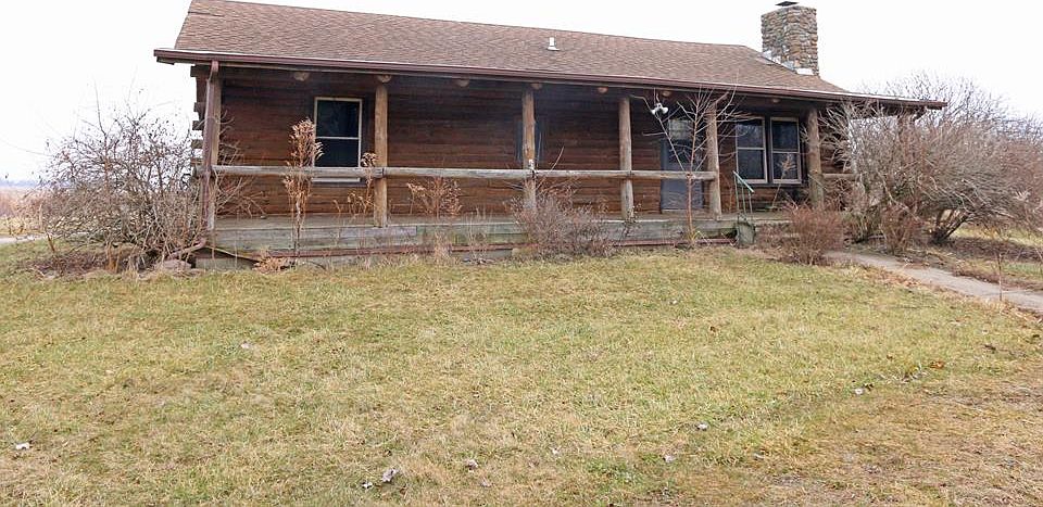 Log home on 5 acre lot. Full Basement ready to be finished (already studded). 3-4 car detached garage both front and back full length covered porches.