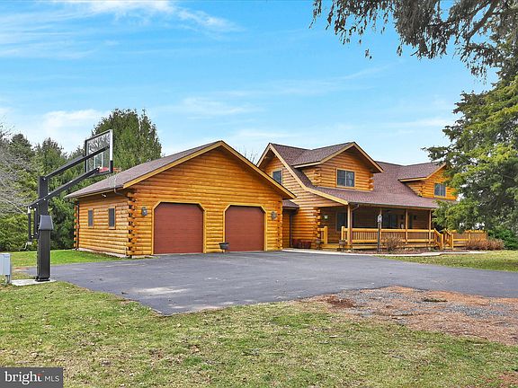 This custom Kuhn Bros log home on 1.86 acres looks better than the day it was built! Great care is evident both inside and out of the residence. Step inside this unique home and you will immediately see and feel the quality of the build with the vaulted ceilings and open staircase in the living room. This room offers a gas fireplace, wide plank hardwood floors and access through sliding doors to the rear porch. The half bath, floored in ceramic tile is just steps off the living room. The bright and spacious kitchen is a cookie bakers dream with large island, newly installed lighting to include lighting under the cabinets, granite countertops, many cabinets, fabulous pantry with pullouts as well a full stainless appliance package. The 16 X 15 ( estimate) primary first floor bedroom has a large walk in closet and attached full bath. Mudroom off kitchen boasts a new porcelain tile floor and access to the two car garage. The wide and open staircase from the living room takes you to the 2nd floor loft. Pause at the open interior balcony and take in the wood and workmanship from here. Its quite the view!! The loft is fully carpeted and would make a great office if your working remotely with sliders to 2nd floor balcony. Two bedrooms on this floor are fully carpeted, both quite large with vaulted open ceilings and closet space galore. The main bath here on the 2nd floor has ceramic tile flooring and comes with a whirlpool tub. The home has many recent updates to include but not limited to: New roof in October 2023, RV Electric hook up in 2022, Radon system in 2015, New carpet throughout 2nd floor in 2022, Power washed, stained and caulked logs in 2022 just to name a few. Take a walk across the almost two acres of property here and take in the front porch the rear balconies and roof lines. Plenty of space for outdoor equipment in the two sheds. This home will make you feel like your in your mountain retreat every day of the week! Make an appointment, take your time to look around and you'll see this really is Home Sweet Home.