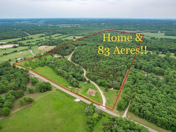 WELCOME TO THIS BEAUTIFUL ALL-BRICK HOME ON 83 WOODED ACRES ON BLACKTOP!! This 3-year newer custom-built home features a 3-bedroom, 2-bath, a wet weather creek, and TWO ponds, one stocked with fish. Enjoy the quiet surroundings as the house sits at the end of a LONG, WINDING, GATED DRIVEWAY!! THE HOME IS STUNNING AND WELL-BUILT! It has an open floor plan with a gorgeous kitchen. Granite countertops, soft close drawers, a walking pantry & major appliances stay; the living room has beautiful windows from floor to ceiling. You can use the motorized shades to let the sunshine in and watch the wildlife in your private backyard. Enjoy the gas log fireplace, too; The spacious main bedroom with a huge closet, the DREAM walk-in shower, & the Radiant heating floors too!! AMONG THE EXTRAS, you will find a 3-car garage with the mini splits HVAC system, a wash-dog room and storm room too, hot water on demand & FANTASTIC TRAILS LEADING to your fishing & hunting adventures in your wooded paradise!