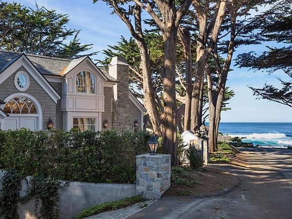 This is one of the few homes that has views of Carmel Bay with Pebble Beach Lodge and Golf Course in the background, and views of Stewart Cove and Point Lobos. In the 6,900 sq. ft., there are 6 bedrooms, 6 and one half baths, a nursery and a work out room. Upstairs is the master bedroom with a full bath and dressing area for her. In addition, an amazing office retreat with a separate bath and dressing area. The corner lot is 9,800 sq. ft. and provides privacy and world class views from both directions.