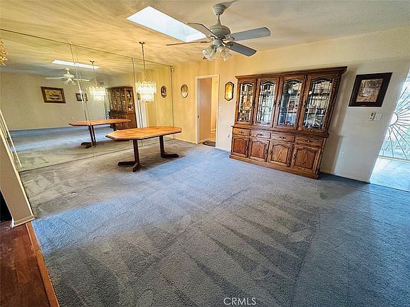 This charming Senior 55+ Home opens to a cozy entry and hallway which leads to a lovely kitchen with eat-in table space with ceiling fan/light. The kitchen offers good lighting, an electric stovetop, electric oven, dishwasher, plenty of counter space and a pantry. The open floor plan provides loads of natural light, new windows, and a wonderful skylight in dining room, and has a great roof and Solar System installed to save you on rising energy costs. This is the perfect home for casual living. Ceiling Fans throughout, a large hall closet for plenty of linens and more, and substantial entry closet to store your coats and other belongings. Enjoy a tub and shower in front bathroom, and new water-saving toilets in both bathrooms. Spacious master bedroom with walk-in closet, separate lighted vanity area and large walk-in shower in en suite bathroom. The mature landscaping in back yard can be enjoyed from the covered patio. Pick fresh fruit from your bountiful Orange, Lemon & Kumquat Trees. Beautiful low maintenance front yard with flag pole. The Garage is finished and offers lots of built-in cabinet storage along with epoxy finished floor. Just off the garage is a Workshop and a Laundry Room with utility sink and even more storage with built-in cabinets. The Sun City Civic Association offers two pools, spa, game room, fitness center, billiards, banquet facilities, and a variety of clubs and social activities. This beautiful home is located near a rather large shopping center, grocery, banking, post office, restaurants, hospital, hardware store, churches and more. With so much to offer, you must see this fantastic home!