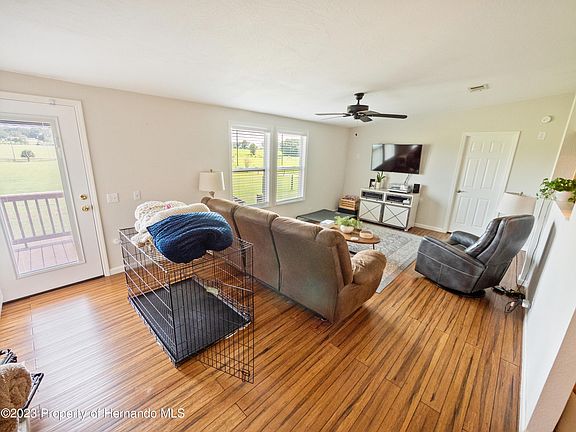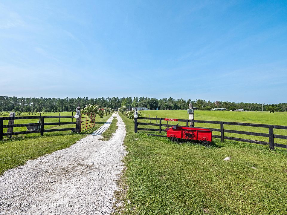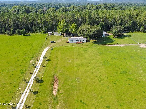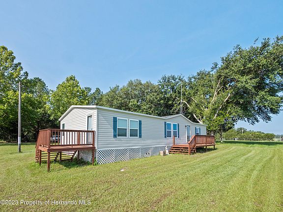 Active With Contract - Accepting Back up Offers. High and Beautiful! Three bedrooms, two bath, 1995 doublewide mobile sits nicely on a rolling hill with lovely breezes and a great view of the local vineyards. Home has been completely updated with a large stainless steel farmhouse sink, beautiful cabinets, black granite countertops. Vaulted great room..sunny and bright. Bedrooms are spacious. Master bath has his and her vanity. Washer and dryer stacked units and storage galore. Almost 10 acres with scattered oaks zoned agriculture on a dead end street. Amazing piece of rural Florida property....Includes a state of the art barn with 3 horse stalls and tack room. Attached to the barn is a guest home with 2 bedrooms and 1 ½ baths. Newly remodeled, with living area with an open floor plan and stainless steel appliances. So many improvements! Pasture land has cross fencing with many water spigots. Also, in addition separate 2 horse stall, shed, out buildings, and pole barns. This property has everything! Great location just minutes from I-75, Withlacoochee State Trails, restaurants, medical facilities and shopping. Easy commute to Tampa International Airport, Gulf beaches and Orlando Disneyland. This lovely horse farm is priced to sell! Tenant in place until 10/1/2023, $1000 per month.