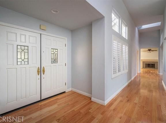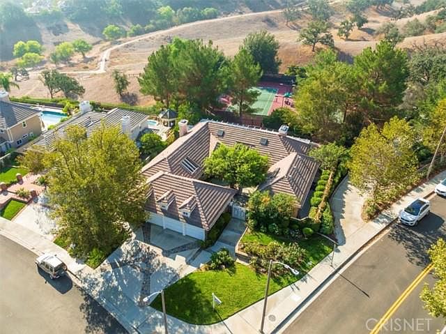 Hard to find Single Story with over 3,000 sq ft on a large corner lot in Prestigious Valencia Summit. Remodeled kitchen featuring custom white cabinets, granite counters, pantry, designer backsplash, and stainless steel appliances. Formal living room with cozy fireplace looks out onto beautifully landscaped yard and view of the mountains in the distance. Family room is perfect for entertaining with step down wet bar and inviting fireplace. Beautiful hardwood flooring throughout, plantation shutters and high ceilings. You won't want to leave your Master suite- step down retreat with romantic fireplace, large bedroom with ceiling fan and master bath with soaking tub and double sinks and Huge walk in closet! Master has direct access to the courtyard. Two guest bedrooms each have their own full bathroom with newer vanities and upgraded flooring. New roof installed in the past 5 years, updated HVAC system in August 2022. Backyard has views of the oak arroyo open space along with the tennis courts. Community Pool directly across the street and paseo access is just steps away! This home has it all- including a 3 car garage! Tankless water heater!Enjoy your day!