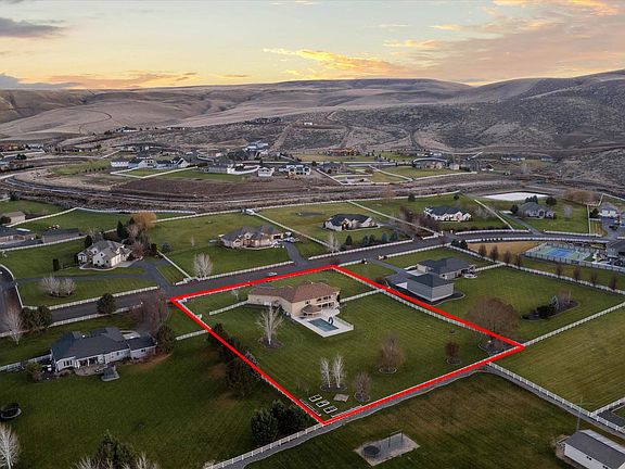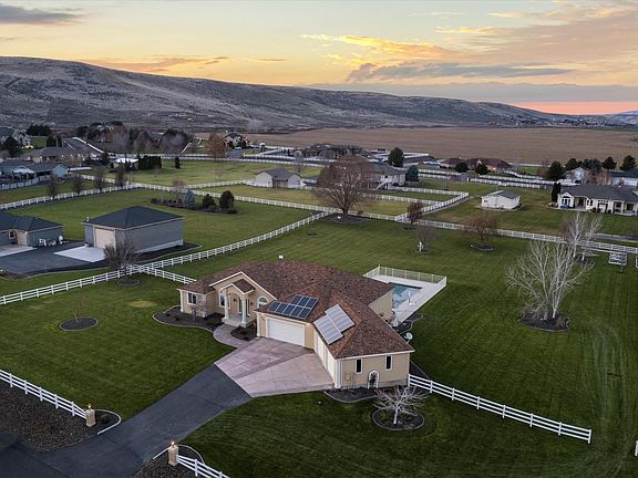 MLS# 273520 Nestled in the scenic Country Meadows Estates of Badger Canyon, where a collection of exquisite homes sit on expansive lots, framed by white fencing, and surrounded by rolling hills, a new chance has arrived to own an oasis for yourself. A pristinely maintained Don Pratt construction home on a 2-acre lot, with a pool and spa, and panoramic mountain views. Let's take a tour...MAIN-FLOOR LUXURY: The heart of the home is the kitchen, adorned with warm maple cabinets, granite countertops, stainless steel appliances, double oven, & a large walk-in pantry. Ample space for entertaining unfolds with an eating bar, informal dining, and an open living area. Step onto the expansive covered deck for stunning views. Privacy reigns in the owner's sanctuary, featuring a sizable primary bedroom with a generous walk-in closet, an indulgent en-suite with dual sink vanities, private water closet, and a walk-in tiled shower. The laundry/mud room resides just down the hall. Additional main-floor amenities include two bedrooms, a second full bathroom, formal dining, and a formal living space. DAYLIGHT BASEMENT DREAMS: The walk-out daylight basement offers versatility—ideal for guest quarters, entertaining, multi-generational living, or accommodating large households. Two more bedrooms, an additional full bathroom, a spacious living room with dining space and kitchenette, a fully stocked theater room with screen, projector, & surround sound, and a sizable flex space await. Perfect for fitness, play, games, classrooms, office space, and more. POOL & SPA PARADISE: Step into your summer oasis on the covered patio. The expansive lot provides endless possibilities. Enjoy hot Tri-Cities summers in the salt-water pool, complete with a splash slide, electric cover, heating, and safety gate. Embrace chilly nights in the in-ground hot tub & spa. ADDITIONAL LUXURIES: Highlights include two newer water heaters, a 2022 50+ GPM well & pressure tank, an oversized 4-car garage, central vac, fully irrigated lot, garden area, fruit trees, new interior paint, solar panels for substantial electric savings, a water softener & filtration system, coffered ceilings, and up to 11-foot ceilings. PRIME LOCATION: This Tri-Cities gem offers a tranquil escape, 15 minutes or less from city conveniences—Costco, Target, shopping, restaurants, wineries, golfing, hiking, schools, & more. Explore the virtual tour for more images and video, schedule a showing & check out the Home Book when you're there!