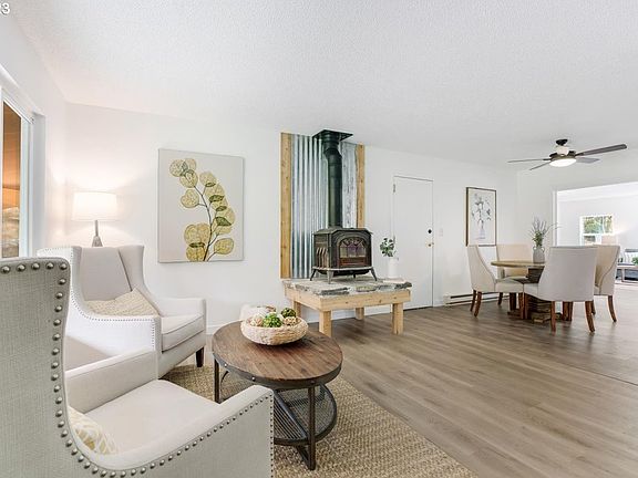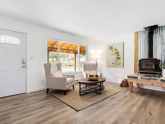 This is the hobby farm you've been waiting for! The perfect opportunity to own land while being close to Oregon City and Molalla. The property is set up with pens, barn and pasture. Walk in to this single level home with new LVP flooring throughout. Cozy up by the wood stove that will heat the whole house on cold winter days. Enjoy gathering in large family room while looking out over your property. Entertain this summer on the covered deck or patio right off the family room. Long driveway with plenty of parking sets you back far from the road.
