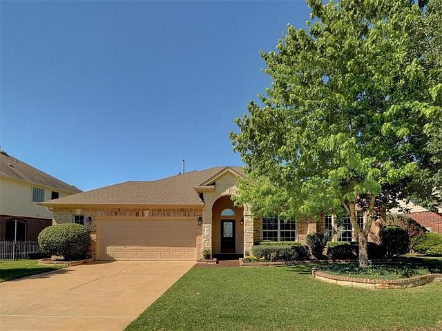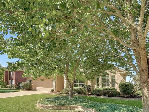 Beautiful golf course views! Like new, fabulously upgraded kitchen with skylight & 2 ovens. Extensive hardwood floors. Large covered patio with flowering landscaping & automatic landscape lighting. Perfect for entertaining! Within walking distance to top-rated schools, playgrounds, a dog park & a splash pad. Beautiful tree-lined neighborhood & walking paths. A short drive to HEB Plus, Stonehill shopping & a Costco coming soon. Quick access to 130 & 45 highways. Hurry! This one won't last! 2.5 car garage