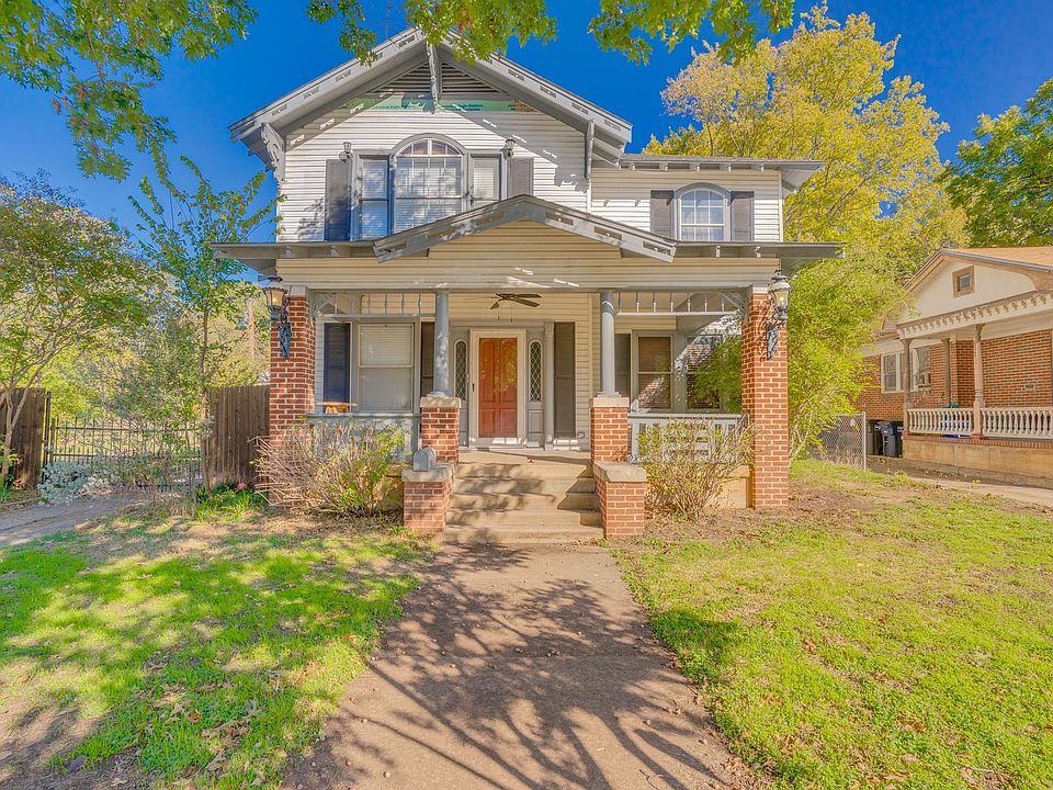 Upstairs floor of a historic duplex built in 1924, Large floor plan with plenty of space. Old world touches with modern amenities extensively updated. 2 miles from Downtown Fort Worth, across I-30 from Gateway Park, Trinity Trail System. Down the street from Hiking trails in Tandy Hills Wilderness area. Wood floors, french doors. Updated bathrooms, large living room, large dining room, large kitchen. Fenced yard, peaceful back porch and flagstone back patio below. Washer and dryer provided in unit! You don't want to miss this one!