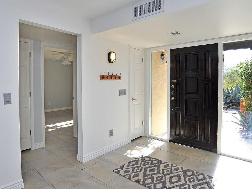 Completely updated home! Upgraded kitchen with granite countertops, stainless steel appliances, sink, faucet, RO system, new hardware, and subway tile backsplash. Bright and light with lots of windows, skylights, tile throughout. Enjoy the warmth from the great room fireplace on chilly nights. Two large bedrooms and two fully updated bath rooms provide escape from the hustle and bustle. Lovely landscaped front patio, covered back patio, private back courtyard with mature trees, landscaping offer a quiet retreat. Choose from three nearby heated community pools and spa. Footpaths throughout the community lead you to community areas and up to La Encantada offering shopping, dining, galleries and more. Relax, take in the mountain views and city lights, you won't want to leave!