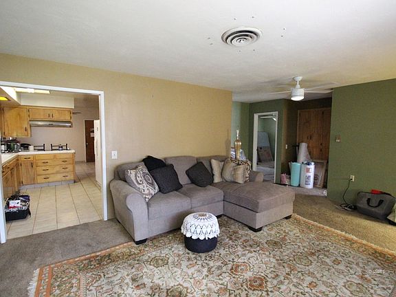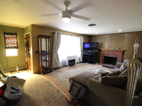 Cute 2 bed 1.75 home ready for quick escrow. Home includes enclosed patio area that can be used as 3rd bedroom without closet or office, living room with fireplace, kitchen with built in oven and separate electric range, wood cabinets, breakfast bar and next to the dining area. Seller installed a newer central heat and air. Also comes with chain link fencing, fruit trees and a 2 car garage that is in the rear of the home
