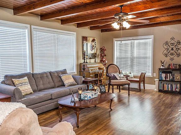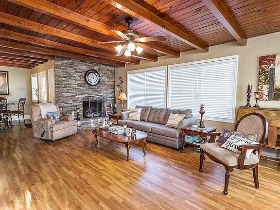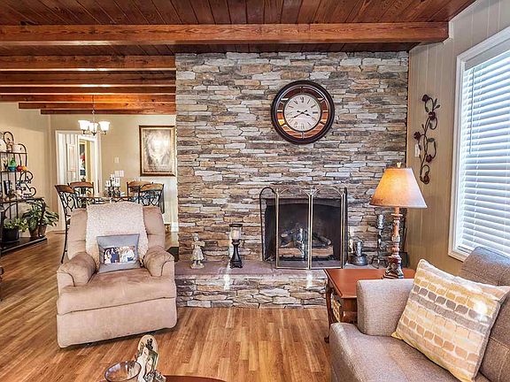 Beautiful 4 bedroom 2 bath one-level home on 1.5 acre lot in Huntland! Gas log fireplace in the living room. Laminate flooring throughout the home with ceramic tile in the baths and laundry room, and luxury vinyl tile in the kitchen. Electric central heat and air, plus 2 gas wall heaters. Covered front porch plus side deck. Low maintenance vinyl siding. Spacious open living area with exposed wood beam ceilings. Two dining areas - living room combo plus an eat-in kitchen. Well has ultraviolet filtration system. Come tour this gorgeous home today!