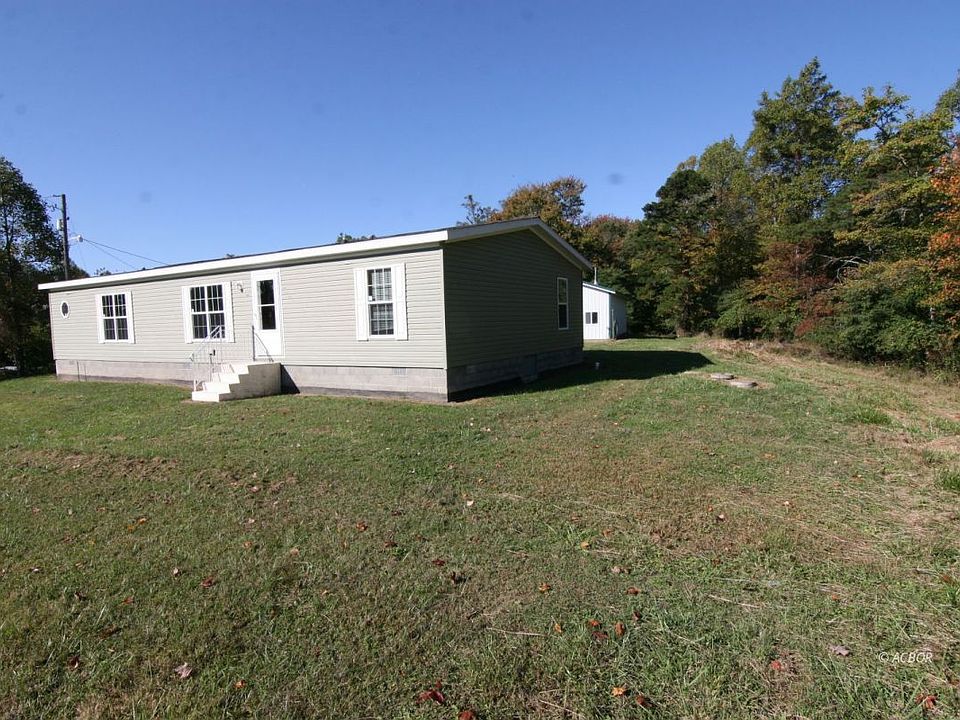 Over 17 A/C M/L nice road frontage and lots of wooded acres to hunt or play. Don't wait on this one, offering a 4 bedroom 2 bath manufactured home converted to real estate with master on the main, equipped eat-in kitchen on the inside. Outside find space for play or work including a large 32x48 pole type building.
