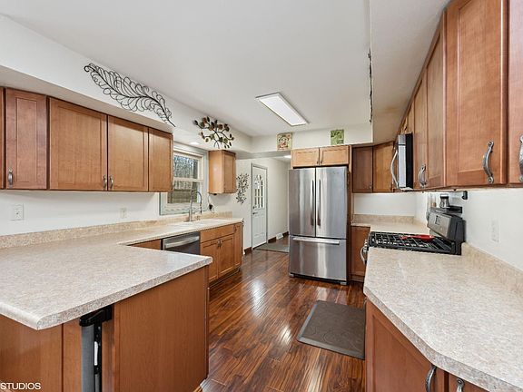 Welcome home to this nicely updated house situated on a quiet cul-de-sac between LaPorte and Michigan City. This home on a wooded lot has been well taken care of and it shows! Updates include: new windows in 2016, rebuilt deck in 2018, new roof, siding and carpet in 2021. Outside you will find a landscaped, fenced in yard that borders up against the woods -watch the deer roam from your deck as you drink your morning coffee. Inside, the kitchen has been updated and includes newer appliances. Enjoy the fireplace off the dining room that adjoins the kitchen. Upstairs you will find all the bedrooms including your large size primary bedroom. The basement has recently been finished to include a cozy rec room outfitted with surround sound. Schedule your showing before this one is gone.