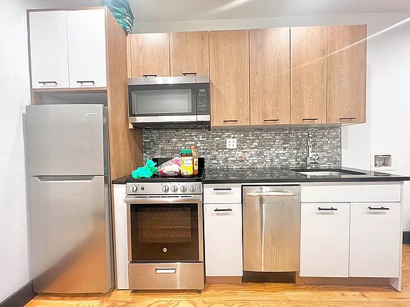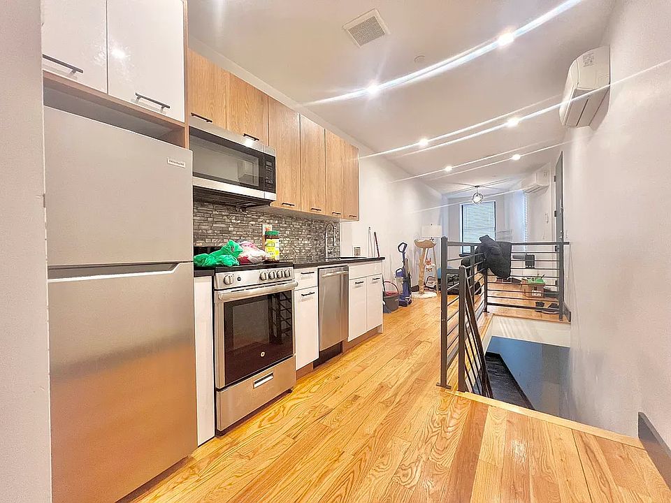 1 Bed 1.5 Bath Duplex in renovated building. Unit features queen size bedroom with w/ a massive basement area. Unit also has central air, and a lovely open livingroom/kitchen concept. There are 1 & 1/2 bathrooms in the unit, both have a nice style with modern fixtures. Kitchen is really nice stainless steel appliances with stone counter top and a dishwasher. Laundry is in building and also access to the roof. Literally 5 mins from the 2,5 trains which gets you to Manhattan in under 30 mins.