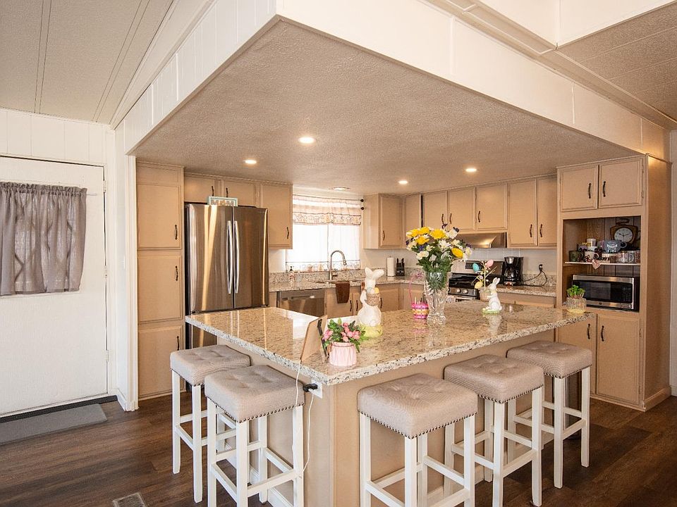 Welcome to 2621 Prescott Rd Unit #222! This beautiful remodeled Modesto mobile home features 2 bedrooms, 2 bathrooms, and 1,248 square feet of living space situated in a 55+ Senior Community! This home's kitchen is spacious and features stainless steel appliances, a stunning island with granite counter tops, and plenty of built-in storage space. Other amenities include a sunken soaking tub, a laundry room with storage, and an outdoor door to the parking lot for convenient access! Association features include pool and spa access, a game room, and a clubhouse! Plus, it is near public transport! This could be the perfect starter home for you and your family! Check out the 3D tour now!