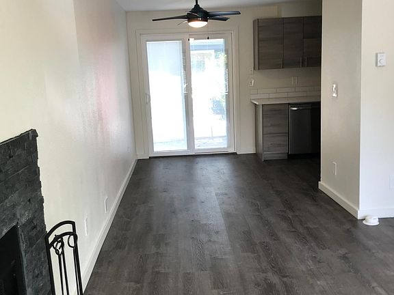 Newly renovated, spacious, clean and sanitized. Fireplace and two patios one of which is private. All appliances including dishwasher and washer & dryer. LED lighting, plank floors, tile shower, quartz countertops, electric heat. Small, quiet complex. Parking space onsite. Bike parking. Located on bike greenway, near MAX stop and one block from bus line. Please contact for a showing appointment. One year lease term, tenant responsible for utilities of electric and water/sewer. Trash and recycling included. Pets okay. Non-smoking complex.