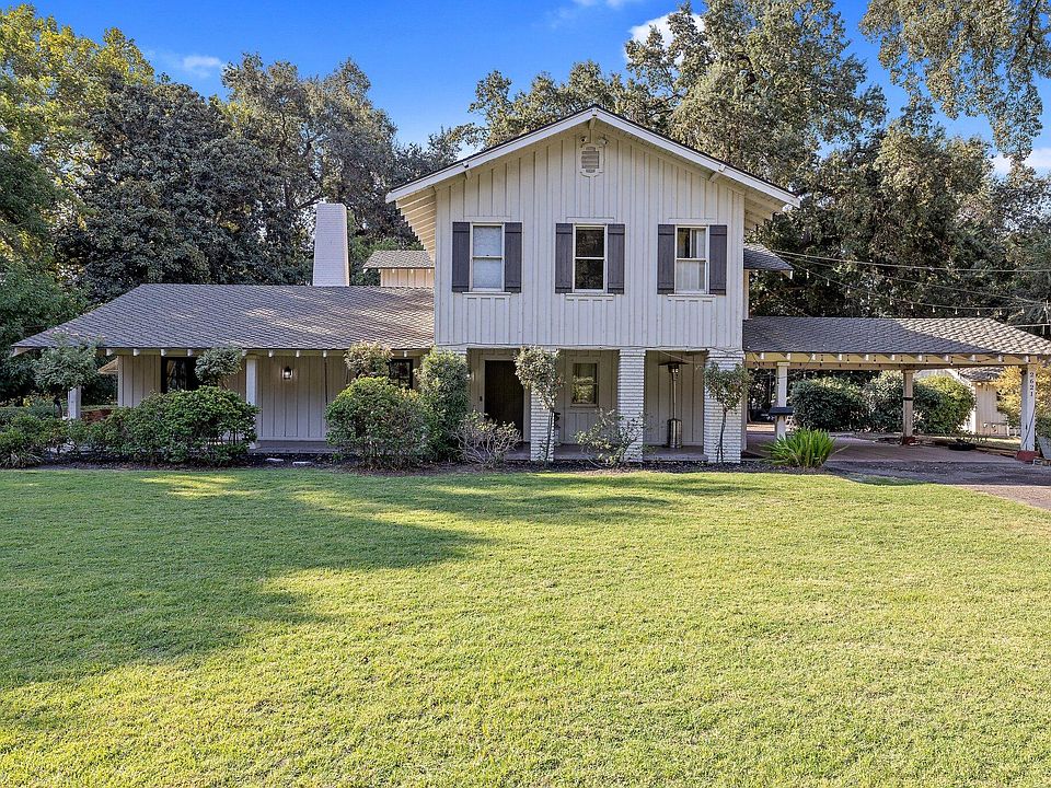 This charming 1934 historic home located in green acres and walking distance to the Visalia Country Club. The lot size is over an acre is perfect for large gatherings and entertaining. Inside the home is full of character sitting along side of a creek surrounded by mature trees and lovely landscaping. This property offers the main home of 2949 sq. ft. and Two detached 1/1 guest cottages.(750 sq ft/450 sq ft approx) This home takes you back into time with a butlers panty, vaulted beamed ceilings, custom woodwork, built in shelving with an over sized dining room. A cozy den with fireplace that has two small hidden cabinets giving you that speak easy feel. Upstairs you have a large master suite with a separate sitting area featuring a large en-suite. Home is zoned both residential and commercial with so many possibilities.