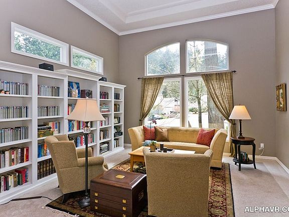 Open floorplan with spacious rooms, coved ceilings and custom paint. Designer details include crown moldings, wainscoting, custom bookshelves. Great separation of space w/4bd up, den on main, bonus rm on lower level. Lg 3 car gar, tall crawlspace for storage, A/C, built-in vac, alarm. Lg #188; acre lot w/seasonal view. Near nature park with trails.