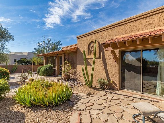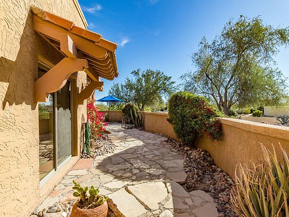Formerly an artists home with unique style and updates. Saltillo like floor tile, slab granite, stainless steel appliances, front loading washer dryer, walk in pantry, high ceilings, two fireplace, great room & Den with high ceilings, studio, cozy covered patio with Saltillo tile to watch the sunsets, snail shower in hall bath, with granite tile & vessel sink, large sky light for natural light, master bath with granite tile on the walls, his & her vessel sinks, claw foot tub & walk in closet with built ins, two armoire will stay. Multiple sliders to patio areas, over size two car garage can accommodate two golf carts, and the home backs to McDowell Mt. Regional Park for biking and hiking, & horseback riding. More...