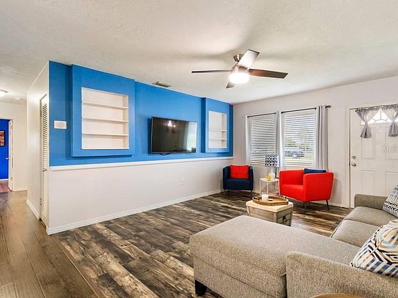 Check out this single-family home, located on a quiet street and complete with an above ground pool & a serene backyard area! With a 4 year old roof and a newly remodeled kitchen, this home is move in ready! The kitchen has ample cabinet space, new laminate floors, on-trend lighting fixtures and gorgeous granite countertops. The home features a living room with built-in cabinets and new laminate floors. The dining room is located off the kitchen with a beautiful chandelier and access to your private backyard. Located just off the dining room is a bonus room, with space for an office area or mud room, with a door right out to your carport. Located just off the carport, there is a locked work shed and storage space. The home has 3 bedrooms, 2 full bathrooms, and a full size laundry room. The home comes with stainless steel appliances and the washer and dryer are included with the home. The backyard is really what will capture you! There is a large ear tree, providing beautiful shade in the summer, a fire pit, large above ground pool and tons of privacy! The property is surrounded by a new vinyl fence that has a life time warranty. Located just a few minutes from I-75 and the premium outlets, this home is centrally located for all your needs!