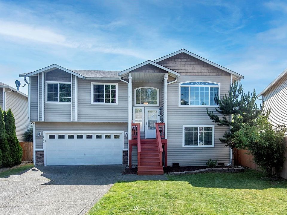 Wonderfully maintained and turn key home near Silver Lake. 4 bedroom, 2.75 bathroom, 2,000 square on a spacious lot walking distance to neighborhood park. Fully fenced back yard is is dialed in with fruit trees, lush lawn, play structure and newly built deck. Inside find fresh paint, ceiling fans, hardwoods throughout upper floor and gas fireplace. Well appointed kitchen with stainless steal appliances, pantry, custom epoxy counter tops, new sink, faucet and garbage disposal. Roof and gutters just cleaned along with furnace and fireplace just serviced. Conveniently located to Silver Lake, Costco, Boeing and I-5. Seller offering $2,000 carpet credit!
