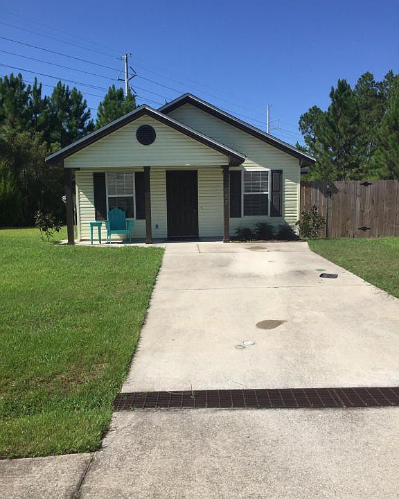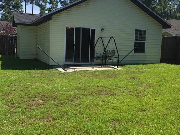 Perfect home for small family or Starter Home. Vaulted ceilings in great room. Very open concept. Beautiful stained kitchen cabinets. Wood laminate flooring in the living area, carpet in bedrooms, and tile in bathroom. Very large master bedroom with an oversized master closet. Covered front proch. Very large fenced yard with a storage area and a great air conditioned work shop. Yard backs up to vacant land for complete privacy. Neighborhood has a small playground for the kids. Convenient to Tyndall and lots of shopping at the Panama City Mall. Very well maintained neighborhood. This house is a must see!!!