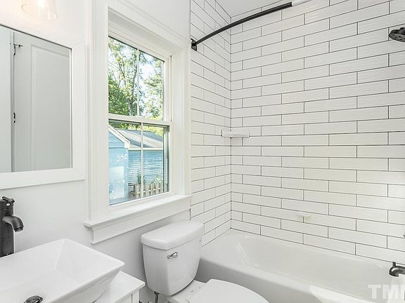 This four bedroom, three full bathroom modern farmhouse boasts of charm and convenience. Kitchen has SS appliances and quartz counter tops. Hardwood floors throughout entire house! Covered deck off of the living room with gas log fireplace and a first floor master. Fourth bedroom could easily be used as an office. Home is pre-wired for AV. There is a large backyard behind the detached 2 car garage. A neighborhood park and Cameron Village are within walking distance.