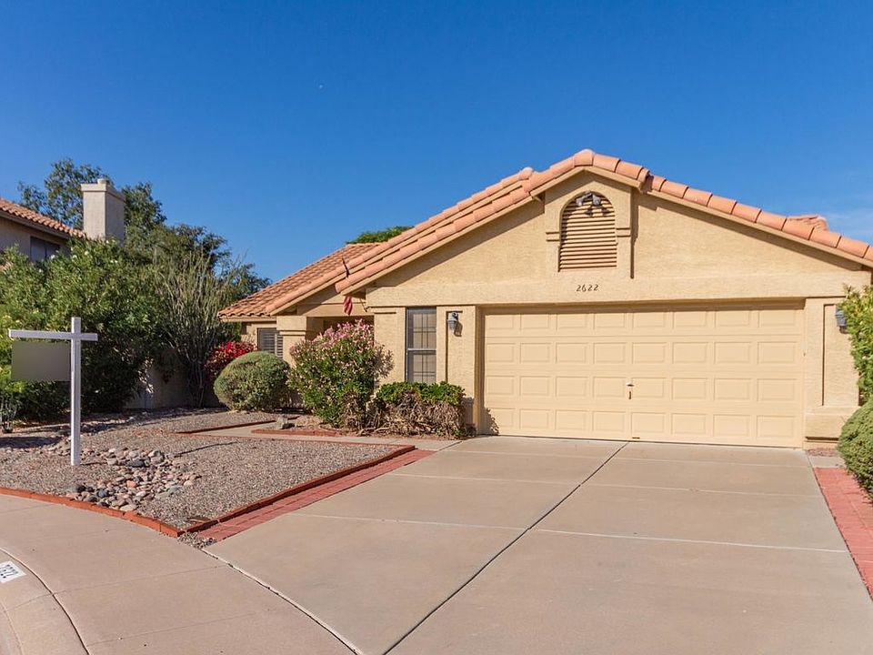 LOVELY Single Story HOME ON PREMIUM OVERSIZED CUL-DE-SAC LOT. COMBINED FORMAL LIVING AND DINING AREA UPON ENTRY FEATURING VAULTED CEILINGS. SPACIOUS EAT-IN KITCHEN WITH OAK RAISED-PANEL CABINETRY, BRIGHT EATING AREA WITH BAY WINDOW. FAMILY ROOM SHOWCASES FIREPLACE AND FRENCH DOORS. MASTER SUITE BOASTS FULL BATHROOM, WALK-IN CLOSET AND DOUBLE DOORS TO DEN OR 4th Bedroom. LUSH BACKYARD IS PERFECT FOR ENTERTAINING WITH OVERSIZED COVERED PATIO WITH CEILING FAN. CLOSE TO AWARD WINNING KYRENE SCHOOLS, FREEWAYS AND ALL THAT MOUNTAIN PARK RANCH HAS TO OFFER.