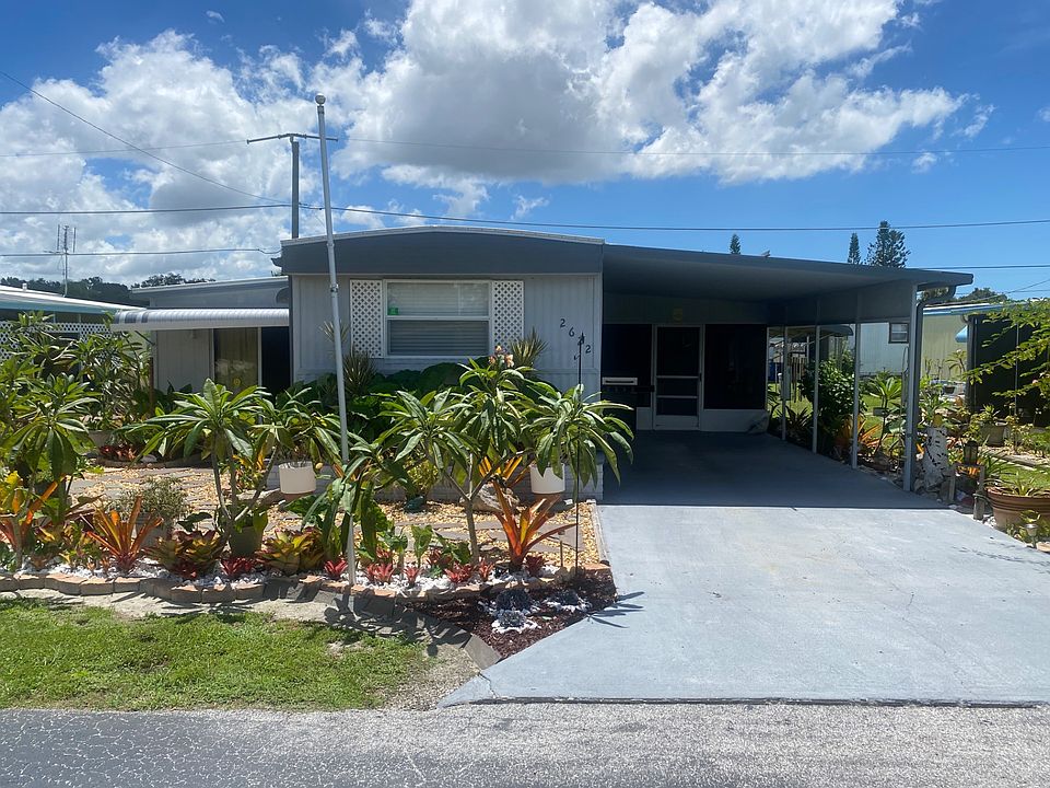 2622 Fred Road Venice FL. 34292 Venice Ranch 55+ Mobile Home Community This home is on a Leased/Rented Lot This 2BR/2BA has room for living, dining and entertaining with a front-set lanai and a carport lanai. There is a 2-car carport and a storage shed. The mobile home comes mostly furnished. There is sheetrock and panel walls throughout. The living room has laminate and the bedrooms have carpet and there is laminate in the the kitchen, dining area and bathrooms. The open kitchen comes with refrigerator, microwave, and oven/stove. There is a buffet/breakfast bar for the casual dine. The master bedroom has a closet, The master bath has a single sink vanity and a separate walk in shower The second bedroom has carpet and a closet, and ceiling fan. The hall bath has a separate walk in shower and a double sink vanity. The lot rent is estimated at $613* and includes the water, sewer, trash, and all the community amenities (including a pool). A small price to pay to live in paradise! (*Actual lot rent TBD by Venice Ranch Park management) Venice Ranch is a mobile home community for 55+ residents. It is conveniently located near shopping, beaches, boating, fishing, golf courses, theater, library, hospital, and restaurants. With an ideal location in South Sarasota County, it is just 1/4 of a mile from Venice City limits, 2 1/4 miles east of 41 By-Pass, and 3/4 of a mile west of Jacaranda Blvd. (Exit 193 of I-75). Sarasota-Bradenton International Airport is easily accessible from I-75 at Exit 213. Florida MH Sales, LLC cannot guarantee or warrant the accuracy of this information, measurements, or condition of any property. Measurements are approximate. All homes are sold "as is" and personal or professional inspection is encouraged. Lot rent is set by the community and is subject to change. All buyers must be approved by the community prior to closing on a negotiated sales contract.