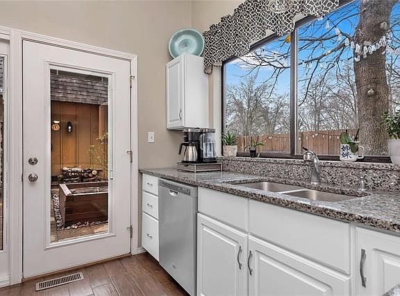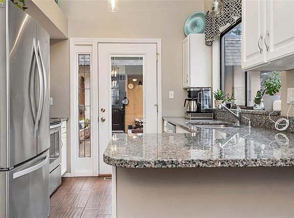You will love this rare find in Heritage Patio Homes - a beautifully updated ranch-style end unit! Step into this vaulted home and be impressed by how open, light, and bright it is. The chef will enjoy plentiful cabinetry, gorgeous granite counters, and a full complement of stainless appliances - not to mention a fabulous view of the enclosed courtyard patio. The vaulted living and dining room spaces easily blend together - perfect for relaxing or entertaining. The brick raised hearth gas fireplace will warm chilly winter evenings, while you sit back and enjoy the view of the enclosed courtyard through the atrium door. Two very nicely sized bedrooms, included a lovely master suite with private bath and spacious walk-in closet. Second full bath to serve your guests. Convenient hall laundry holds full-sized laundry units! Summer barbecues and outdoor get-togethers await in the large enclosed patio! Top it off with an oversized two-car detached garage, easily accessed from the patio.