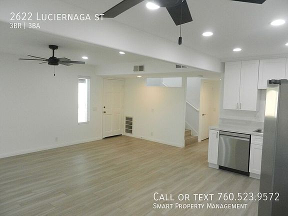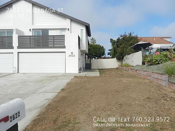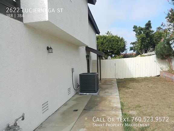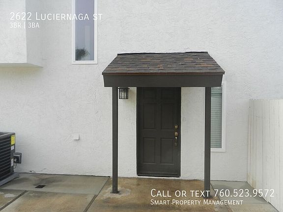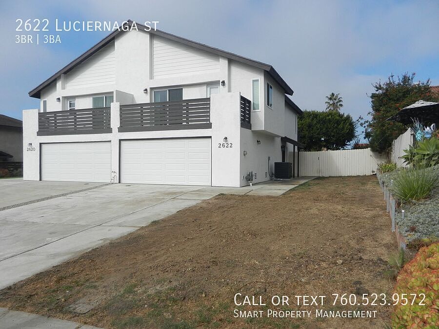 2622 Luciernaga St., Carlsbad, CA 92009 3 Bedroom/ 2.5 Bathroom/ 2 car attached garage/ 1541 sq ft 2 story twin home! Central A/C! 2 Car attached Garage with opener! Beautifully remodeled Twin home in Carlsbad. Large front and back yard with low maintenance, drought-tolerant landscaping. Open concept kitchen. Quartz counter tops and newer appliances, including a newer refrigerator. Washer and dryer provided in garage! Large driveway leads to a two-car attached garage. Upgraded bathrooms with tile shower and bathtub. Luxury vinyl flooring through out! View balconies in front and back are accessible from each bedroom. Available now! Pets OK with owner and home owner's insurance approval and additional deposit/rent. Thanks for your interest! This Property Proudly Managed By Smart Property Management