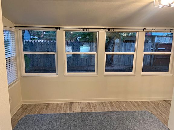 Located in the Roswell neighborhood. It was just professionally remodeled with new solid surface flooring, plumbing fixtures, high efficiency split air heating and cooling system with controls in 4 rooms... It has a nice sun room, lots of storage with off street parking and a carport. Private location with great neighbors, near the Santa Fe trail system and next to a city park. Laundry units on site. $40 application fee and must be able to pass background check. $1,395 rent plus utililities. Small pet possible with pet deposit. No smoking in premises.