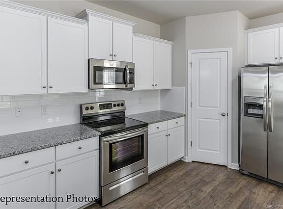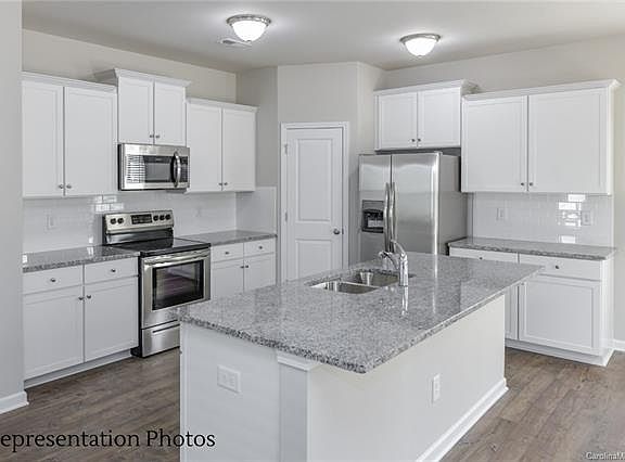 Brand New Construction with a wonderful open concept design and stylish modern colors. Easy living floorplan includes 4 bedrooms & 2.5 baths along with 9' ceilings and beautiful hardwood look laminate floors on the main level. Spacious foyer leads to the adjoining Kitchen, Dining and Family Room with lots of easy-flow living space. Large Kitchen has granite counters, white variable height cabinetry, Frigidaire stainless appliances and subway tile backsplash, plus a large granite island with breakfast bar and walk-in pantry. Tile floors in the baths, convenient 2nd floor laundry room, vaulted ceiling and huge walk-in closet in the Master Suite. Nestled on a Half Acre lot and no HOA! Quick access to I-485.