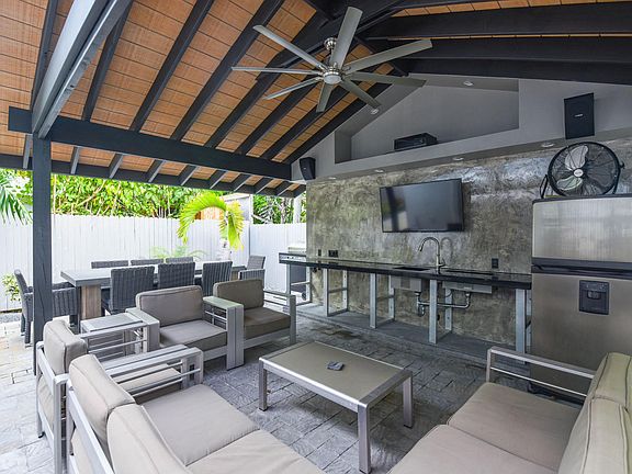 This modern 3 bedroom 2 bath home is centrally located in Key West and is move in ready. The double door fenced entrance allows for complete privacy. The impressive backyard includes a vaulted wood ceiling covered patio that is ready for entertaining. The heated dip pool and beautiful landscaping complete the backyard area. The open kitchen features granite countertops, stainless steel appliances, wine cooler and bar top seating. The large frame windows allow for plenty of natural light kitchen and open living area . The spacious master bedroom includes walk-in closet and dressing area , along with a large bathroom with double sink and a large custom shower with rainfall shower fixture .