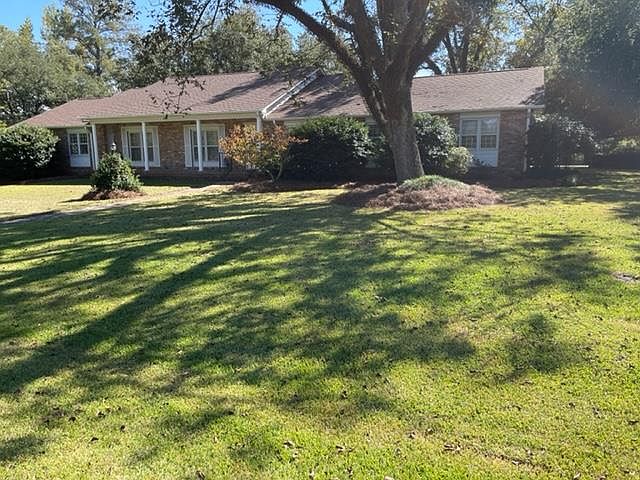 Built by and owned by one family for 60 years. A 4 bedroom home built with bricks from the old Laurel cotton mill. There are two and one-half bathrooms. Built-ins galore in library, dining room, master bedroom, and 2 secondary bedrooms. Large kitchen with Corian countertops, 2 large islands with pull out drawers behind the cabinet doors, 3 sinks, and large storage room/pantry. Pecan hardwood floors in the entry, formal living room, library, dining room, and bedrooms. Tile in bathrooms, laundry room, and combination kitchen-breakfast area-den. There is a fireplace in the dining room and iron and glass security doors. Beautiful oak trees