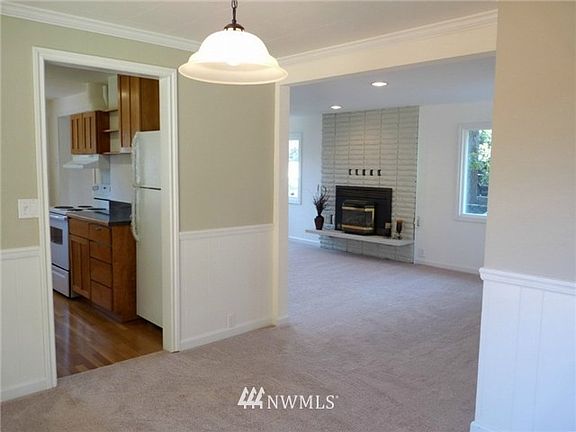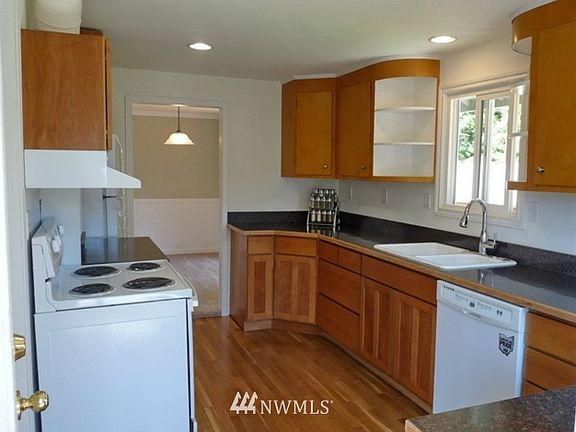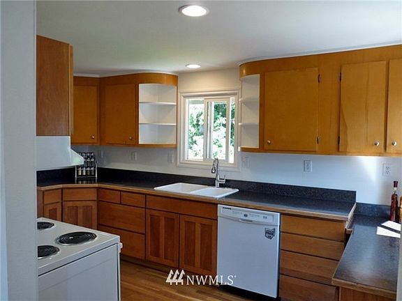 MOVE IN READY! Beautifully updated kitchen, bath, new tile flooring, new carpet, refinished hardwoods, contemporary colors inside and out and fully finished basement! Two bedrooms PLUS den/home office (All appliances stay!!!) Exterior features include oversized one-car garage,(room For a shop!) NEW deck, wonderful patio, architectural roof, partially fenced, and double pane vinyl windows. Home backs up to 5ac greenbelt! Located near shopping, hospital, & a short drive to the Bremerton ferry.
