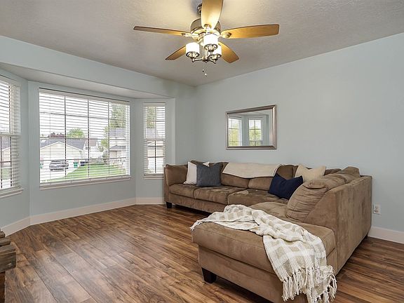 Five bedroom home, neat and clean, 2 full baths, jetted tub. Large covered Trex deck, storage shed/workshop, RV parking. Trucks will fit in this garage. See agent remarks.