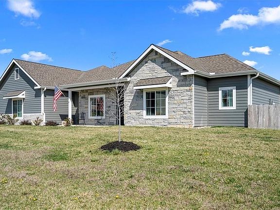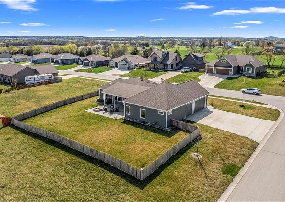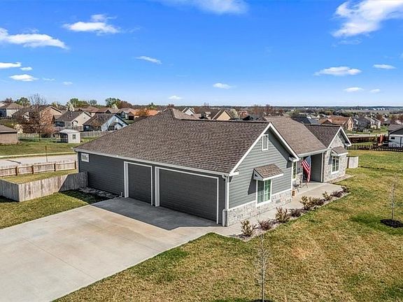 Beautifully Upgraded 2020 Ranch Home on Oversized Corner Lot No HOA fees!Built in 2020 by builder Paul Nuzem, this thoughtfully designed one-level home offers 1,684 sq ft of living space with a split-bedroom floor plan, 3 spacious bedrooms, and 2.5 bathrooms. Luxury vinyl plank flooring runs throughoutno carpetmaking it both stylish and low maintenance. Set on a .38-acre fenced corner lot, the property includes a 3-car garage, sprinkler system, and additional attic storage with storage trusses and pull-down stairs. The fully fenced backyard features a wood privacy fence and a covered back patio perfect for outdoor living. The kitchen boasts quartz and granite countertops, soft-close cabinetry, stainless steel GE appliances, and a top-of-the-line Caf dual-fuel range with a center griddle option. Under-cabinet lighting, ceiling-height cabinets, USB outlets, and high/low TV hookups make this kitchen as functional as it is beautiful. The spacious primary suite features a FEMA-rated walk-in closet/tornado shelter, dual-head walk-in shower with body sprays, and double vanity. Additional upgrades include: 2x6 exterior framing and enhanced insulation for energy efficiency and sound reduction, ADA-compliant doorways (garage, patio, and bedrooms), lighting upgrades in the living room and primary suite, laundry room with utility sink, pantry storage, and stackable washer/dryer (included), covered back patio with built-in fire pit, natural gas line for grilling, and TV hookup. Garage is plumbed for a sink. Move-in ready, beautifully maintained, and NO HOA fees! 2025-05-02