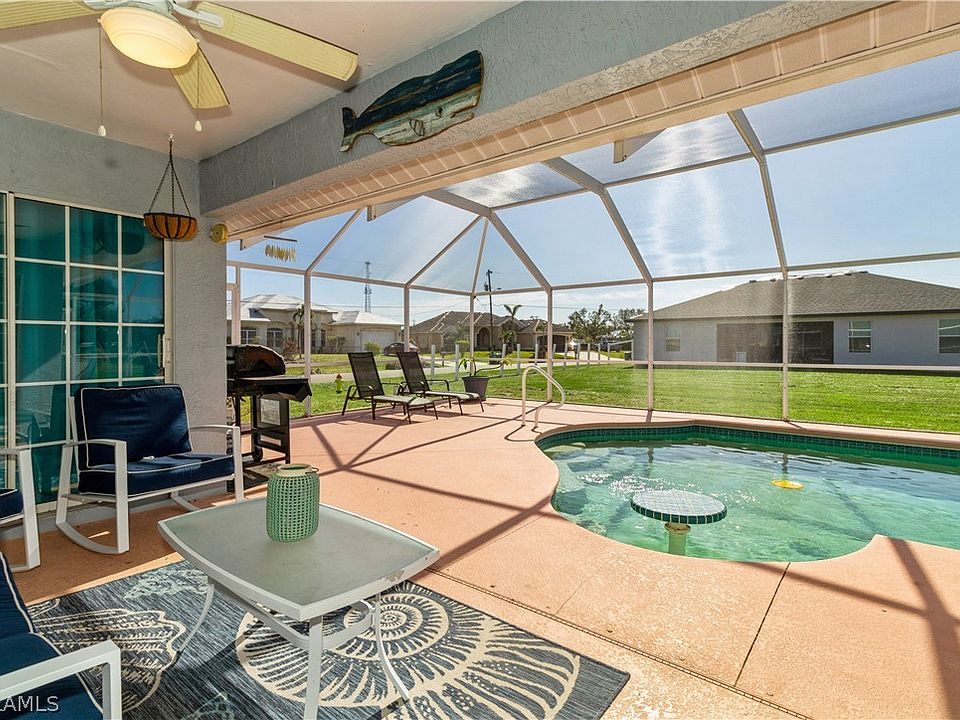 MOTIVATED SELLER! Come check out this spacious 4 Bedroom/2 Bath Pool Home, it is ready for you to make it your own. Just 2 blocks to a Cape Coral park with playground and tennis courts. The home is near the Burnt Store Rd and Pine Island shopping corridor. Large Family Room and Open Kitchen for family togetherness. Split floor plan has the kids/guest bedrooms and bath on the other side of the home offering additional privacy. Large Master Suite, and ensuite offering a soaking tub, separate shower, double vanity and walk in closet. Laundry room in the home near garage entry; Lots of outdoor sun with a Southern facing backyard and pool. Home has new roof July 2022; and New A/C in 2022 as well. Two blocks from Jim Jeffers Park and one of the Cape Coral Charter Schools. Minimal damage during hurricane Ian, seller has already made repairs and insurance claim has been closed. (Repairs included a few shing les and ridge cap replaced, pool screens blown out, some soffit blown out, and pool pump timer. Curtains and Rods do not convey. Security equipment will be removed it is through Xfinity. SELLER MOVING FOR WORK AND LOOKING FOR OFFERS!